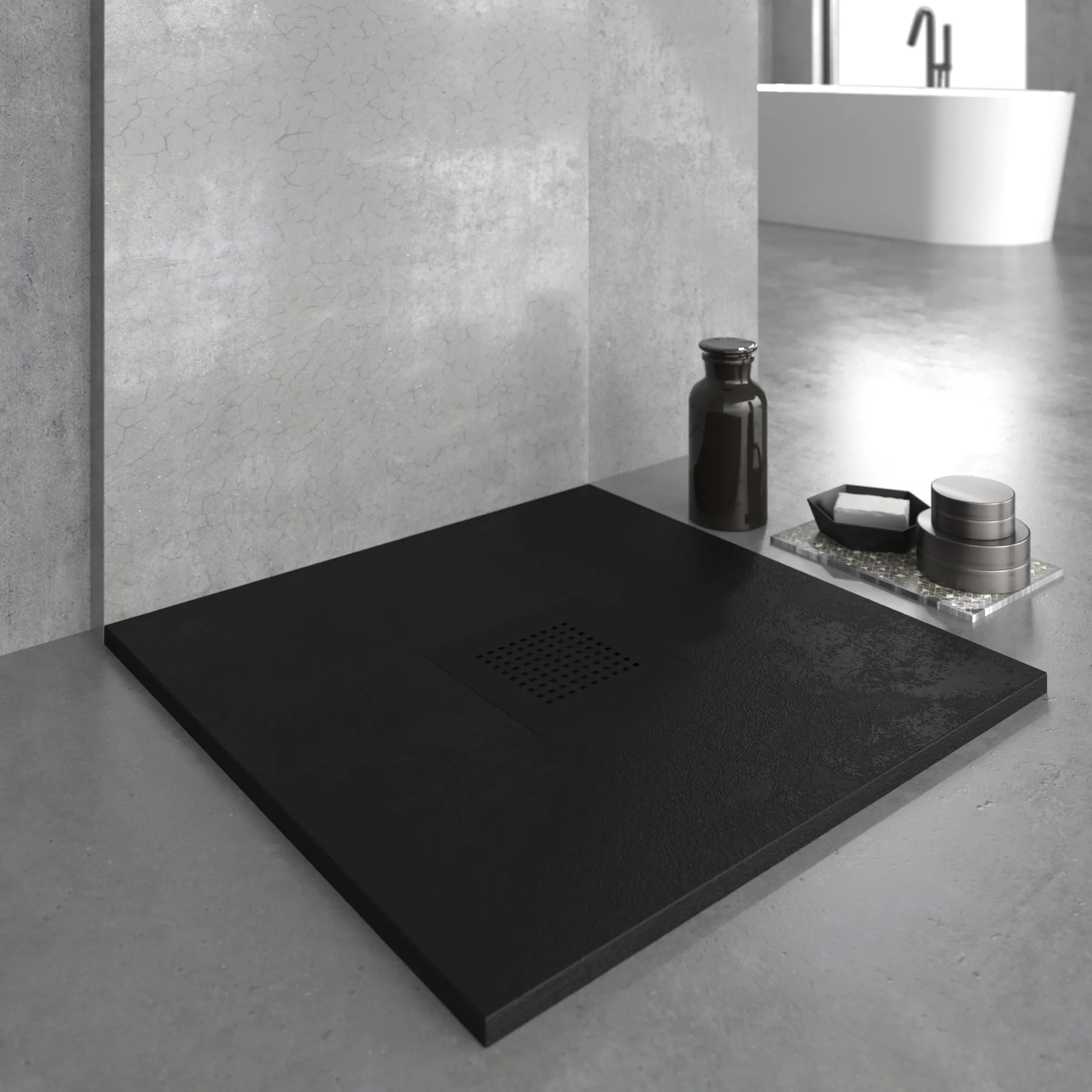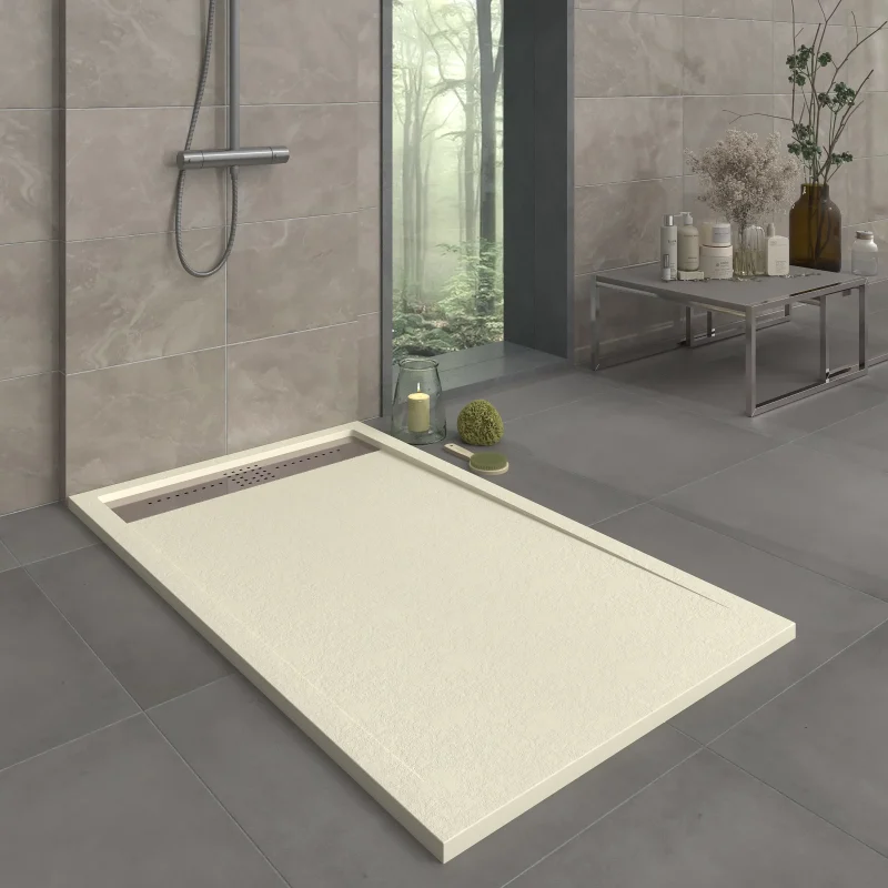 Imaginez un receveur de douche en résine qui redéfinit le luxe dans votre salle de bain : fabriqué à partir de résine et de charges minérales de la plus haute qualité, avec une grille dissimulée, une texture ardoise et un traitement antibactérien pour une hygiène maximale.